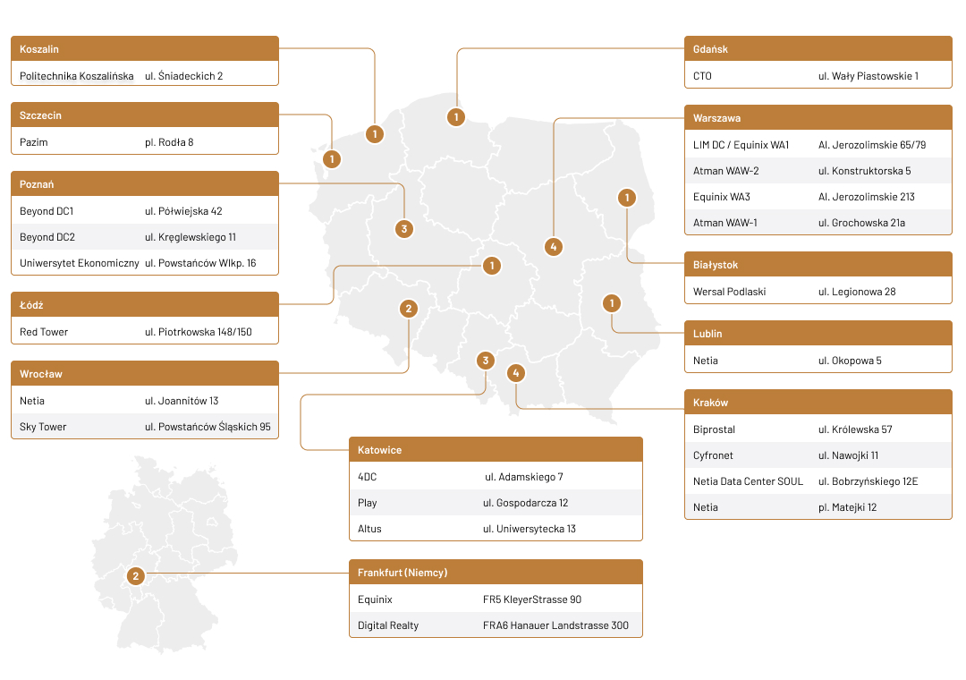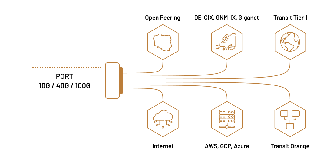 Punkt wymiany ruchu Thinx IX to pełna elastyczność w tworzeniu optymalnego dla operatora modelu usług IP — bezpłatna wymiana ruchu (open peering) z sieciami krajowymi, europejskimi dostawcami treści i globalnymi portalami.