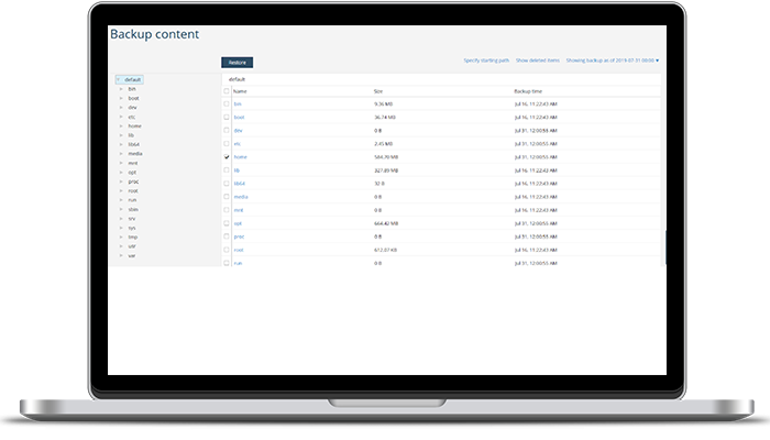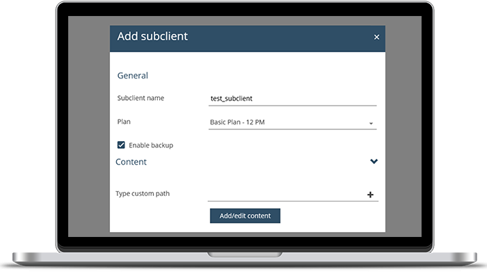 • Zapewniamy predefiniowane, wbudowane plany backupu dostępne od ręki w panelu administracyjnym, ale obsłużymy też każdą złożoną potrzebę – retencja danych może być jednodniowa, a może wynosić 365 dni, nietypowe pory wykonywania backupu itd.
